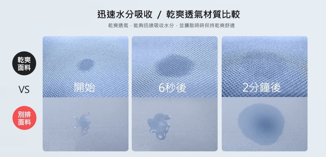 如果汗水不能快速的排出布料以外 就會變得黏在皮膚上非常的難受。